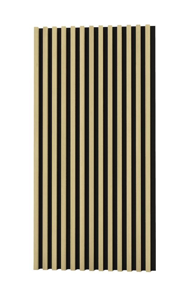 The panel is made from solid pine slats, which are made in size 22x22mm and lengthened to 1200mm as a result of technical operations. The acoustic base of the panel consists of the acoustic fabric Nordisk acoustic 270A, which provides the acoustic function to the panel. The pine slats are stapled to the veneer cross slats with clamps, through the 15mm thick plywood cross slat, which ensures that the slats do not move. The slats are treated with an tone stain and varnish – Tikkurila fonte fire, which provides toning of the slats. It should be noted that a tree exposed to long-term UV rays may change its original appearance over time. Wood is a natural product and each panel is unique, therefore it should be noted that color, tone and structural differences are considered normal and part of the design.